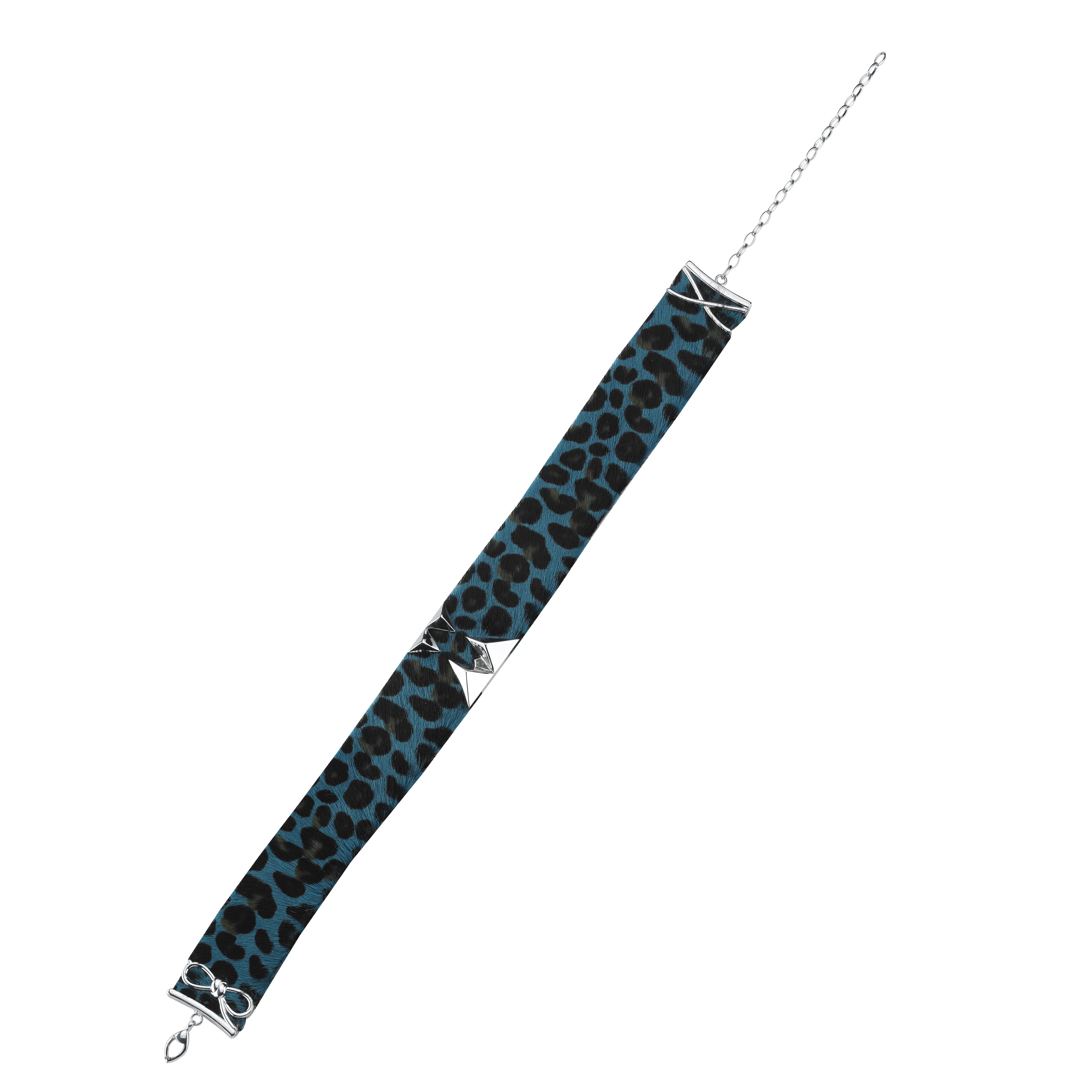 A talisman of instinct and allure. A piece of power. At its centre lies a silver pendant shaped like an animal tooth — a tribute to primal beauty — adorned with a natural quartz stone. The combination of fur, suede, and silver forms a sculptural piece that blurs the line between jewellery and armour.